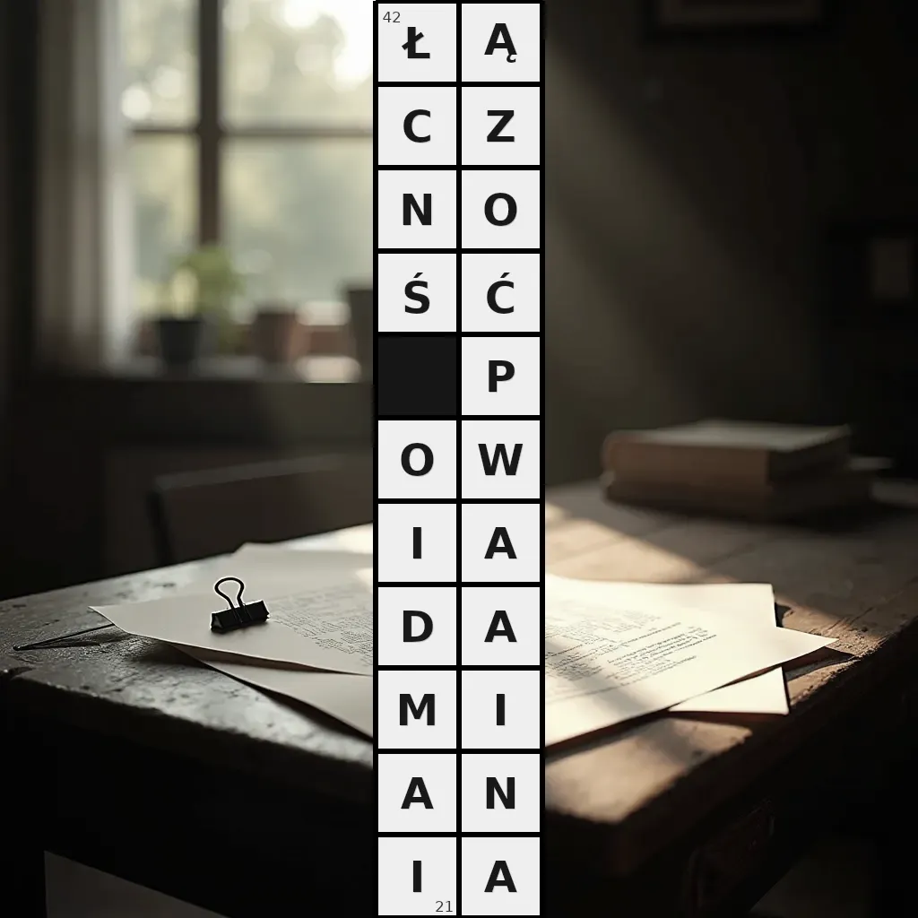 Słowo „łączność powiadamiania” ma 21 znak (bez spacji i łączników).