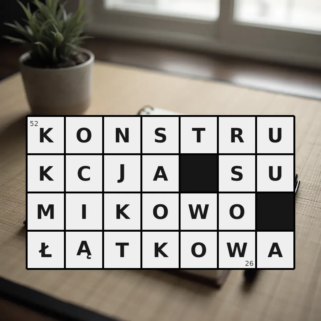 Słowo „konstrukcja sumikowo-łątkowa” ma 26 znaków (bez spacji i łączników).