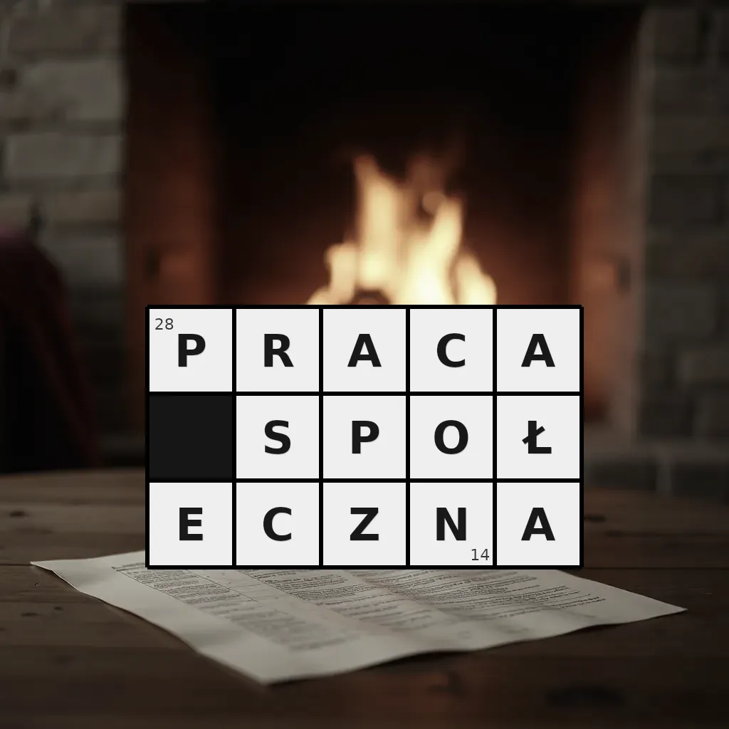 Słowo „praca społeczna” ma 14 znaków (bez spacji i łączników).