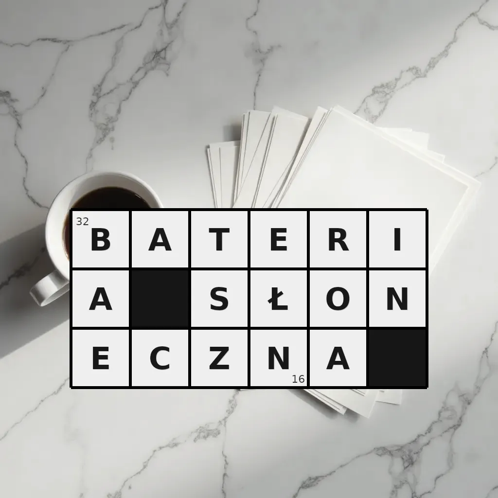 Słowo „bateria słoneczna” ma 16 znaków (bez spacji i łączników).