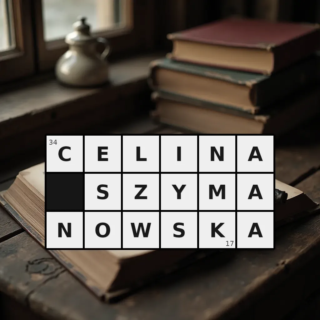 Słowo „celina szymanowska” ma 17 znaków (bez spacji i łączników).