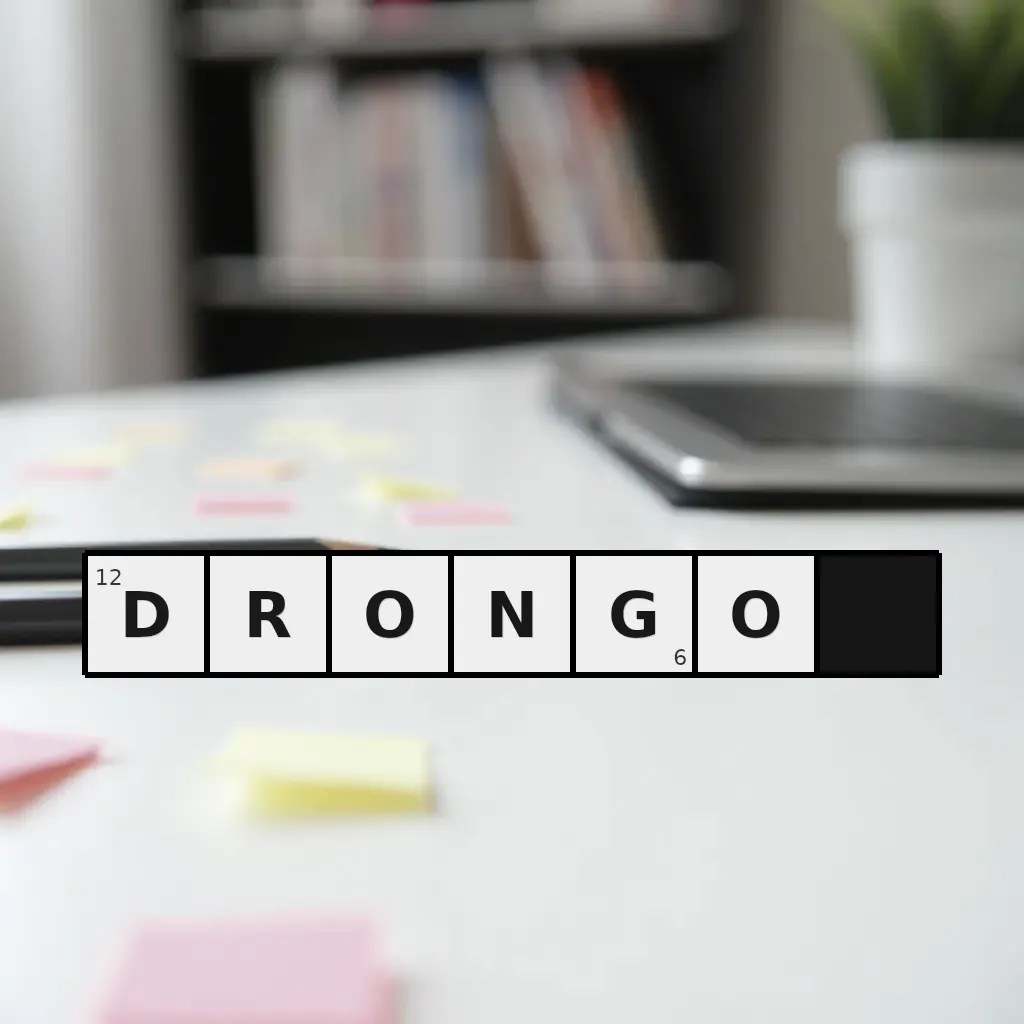 Słowo „drongo” ma 6 znaków (bez spacji i łączników).