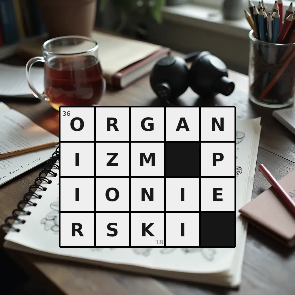 Słowo „organizm pionierski” ma 18 znaków (bez spacji i łączników).