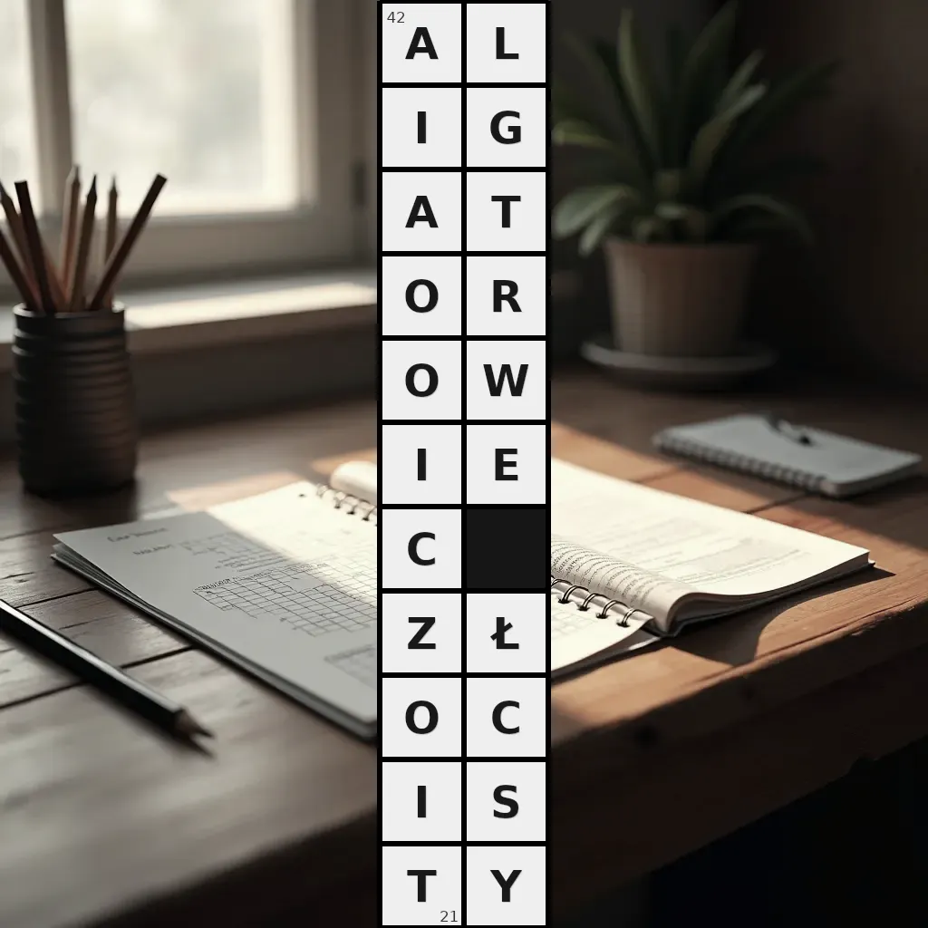 Słowo „aligatorowiec złocisty” ma 21 znak (bez spacji i łączników).
