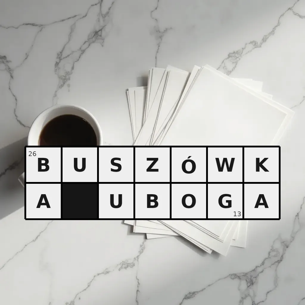 Słowo „buszówka uboga” ma 13 znaków (bez spacji i łączników).