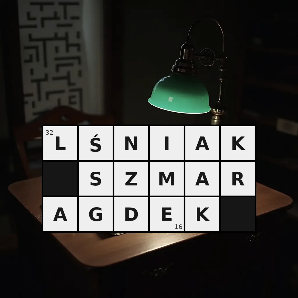 Słowo „lśniak szmaragdek” ma 16 znaków (bez spacji i łączników).