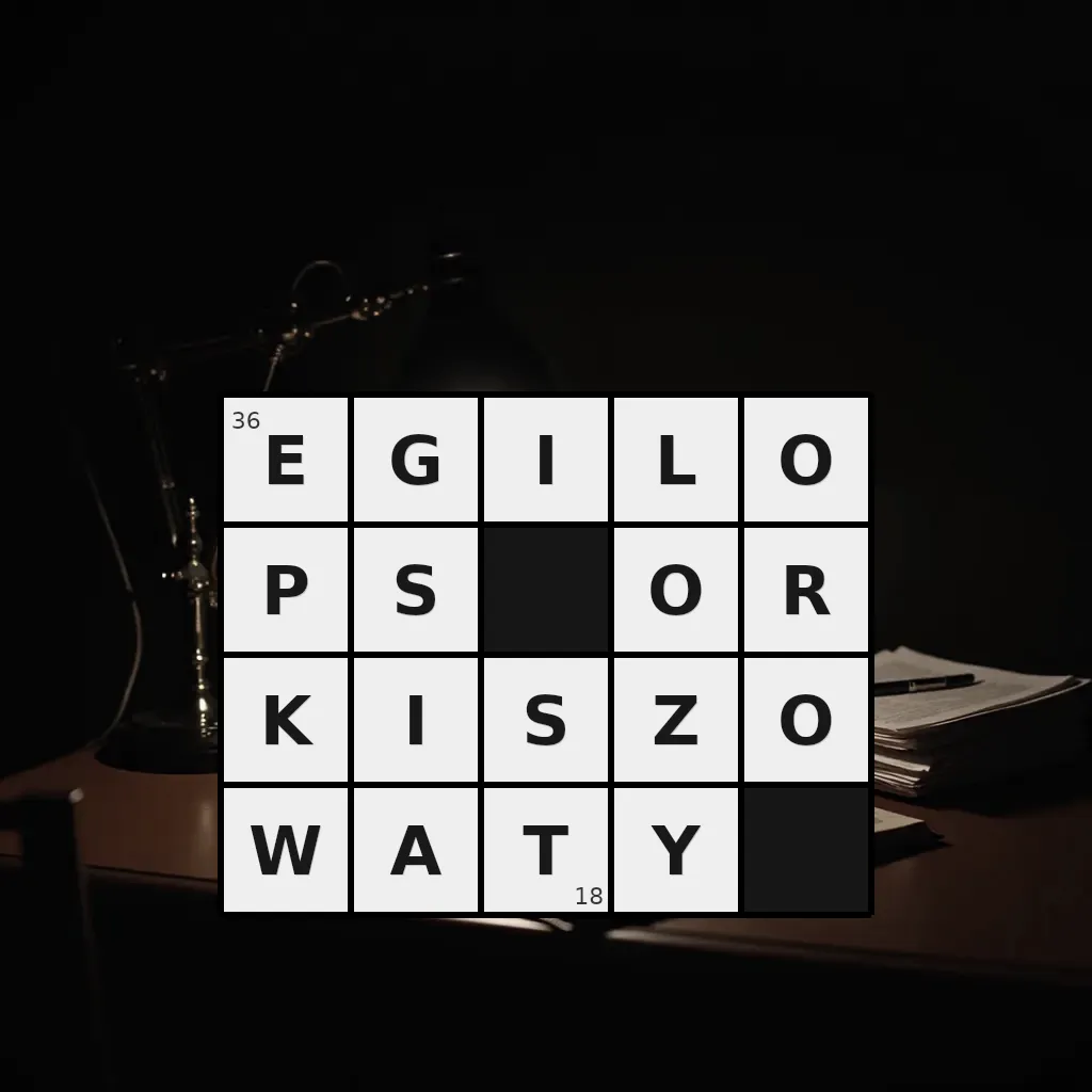 Zawiera litery: A, E, G, I, I, K, L, O, O, O, P, R, S, S, T, W, Y, Z