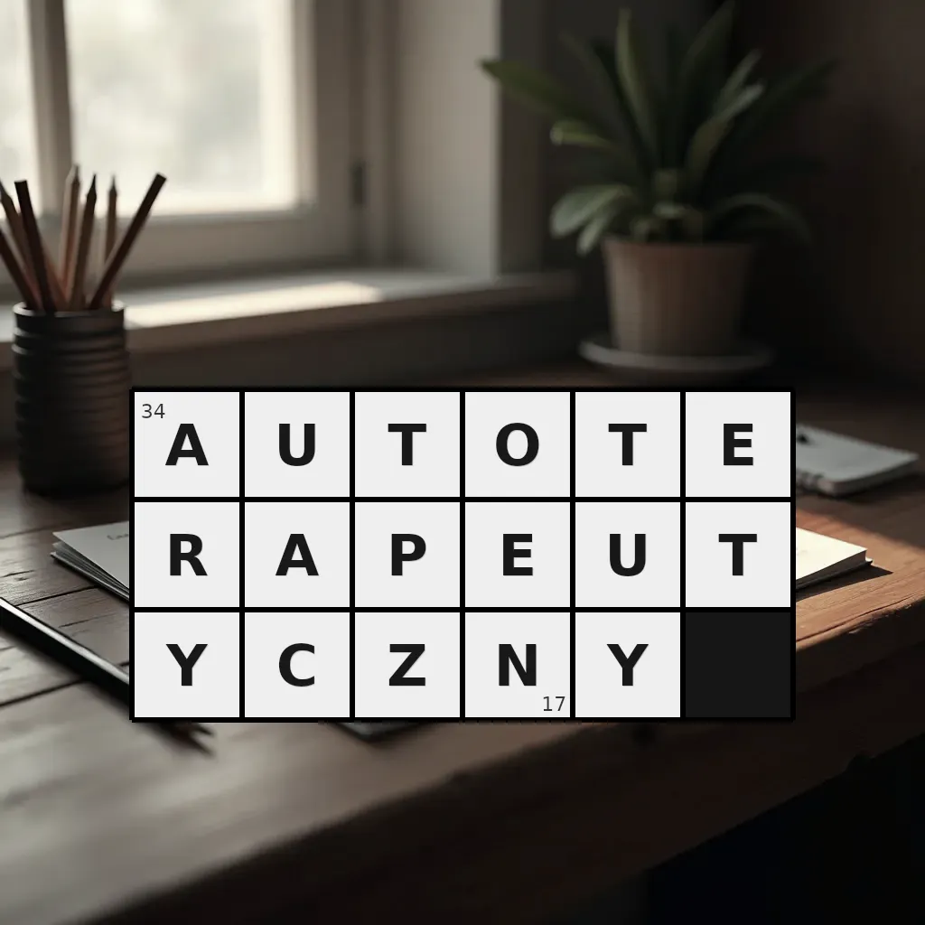Słowo „autoterapeutyczny” ma 17 znaków (bez spacji i łączników).