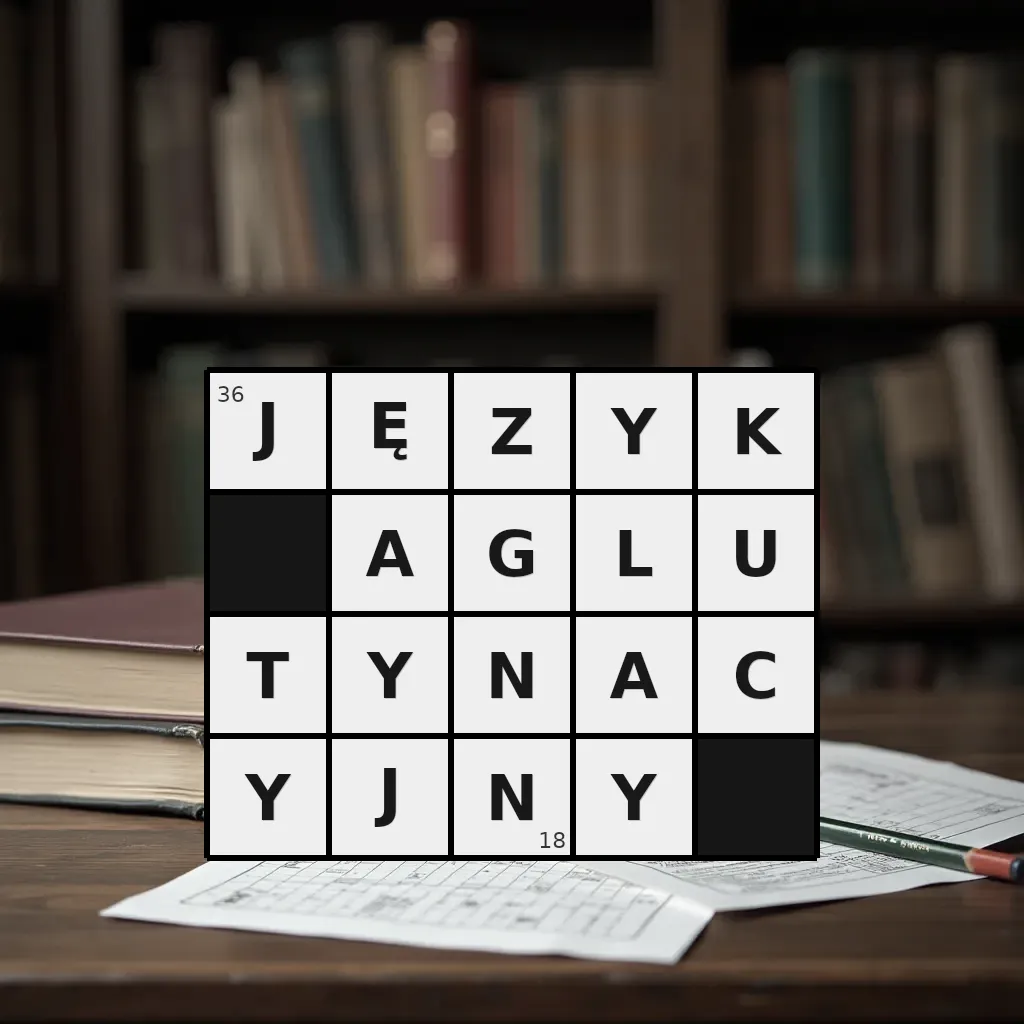 Zawiera litery: A, A, C, G, J, J, K, L, N, N, T, U, Y, Y, Y, Y, Z, Ę