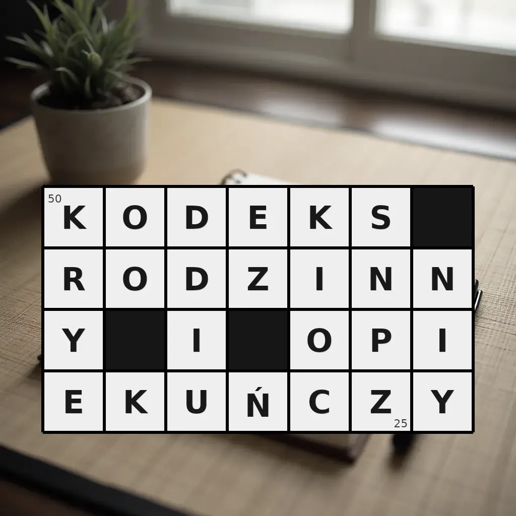 Słowo „kodeks rodzinny i opiekuńczy” ma 25 znaków (bez spacji i łączników).