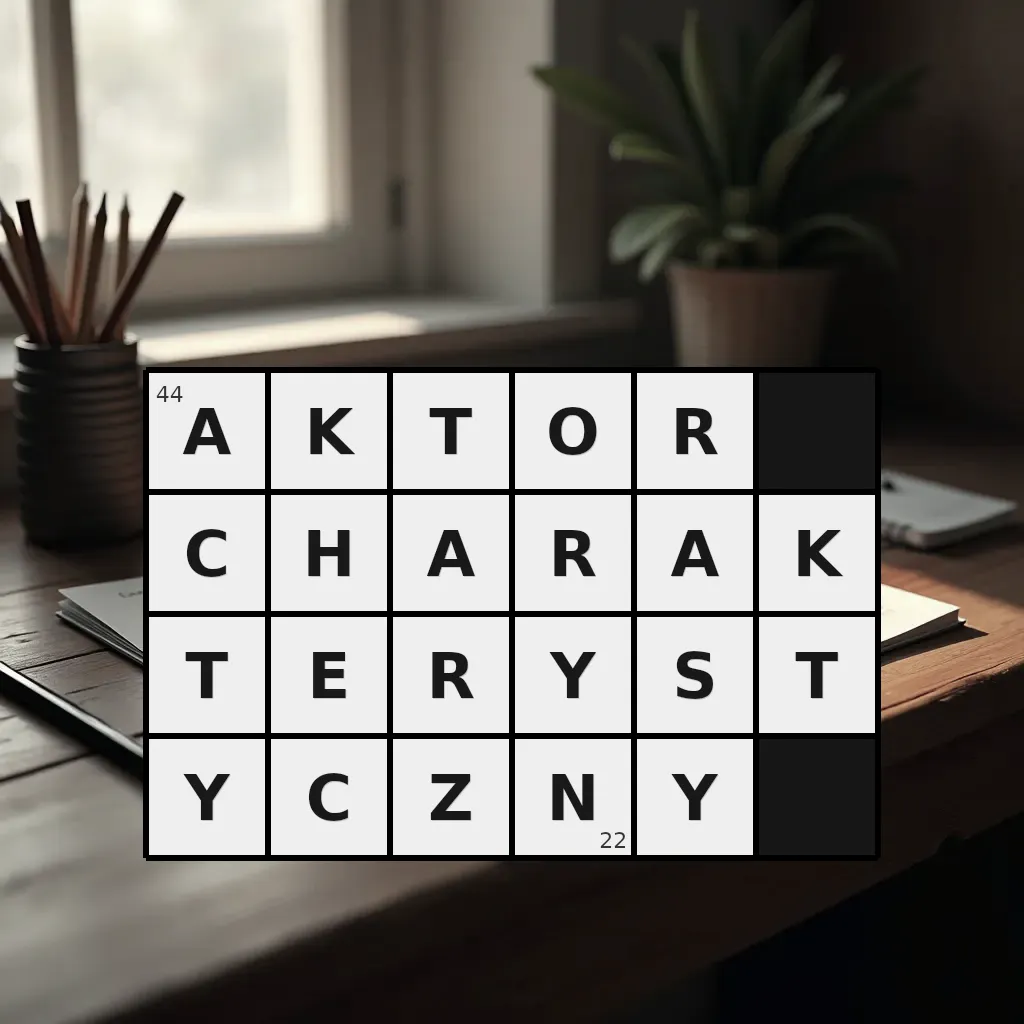 Słowo „aktor charakterystyczny” ma 22 znaki (bez spacji i łączników).