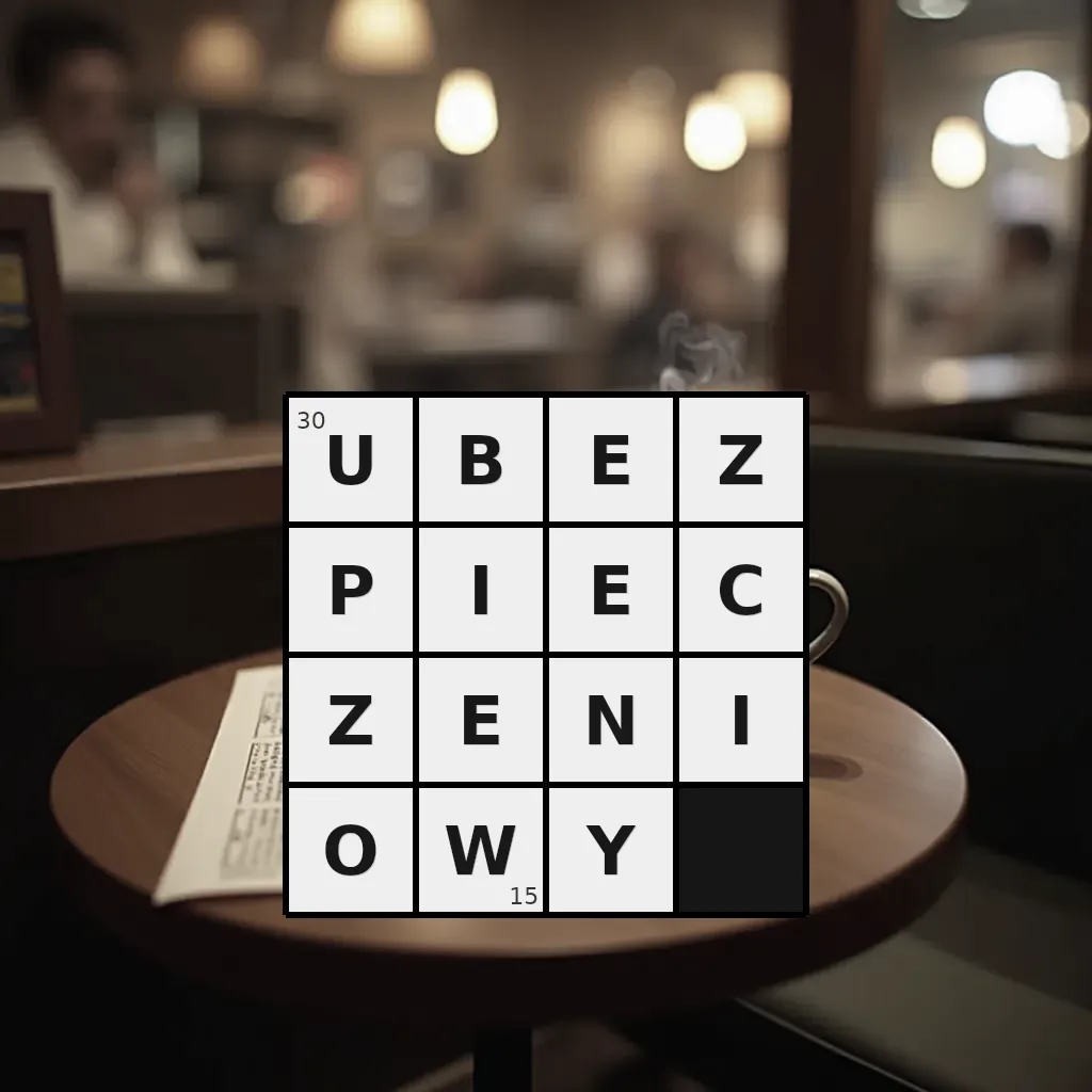 Słowo „ubezpieczeniowy” ma 15 znaków (bez spacji i łączników).