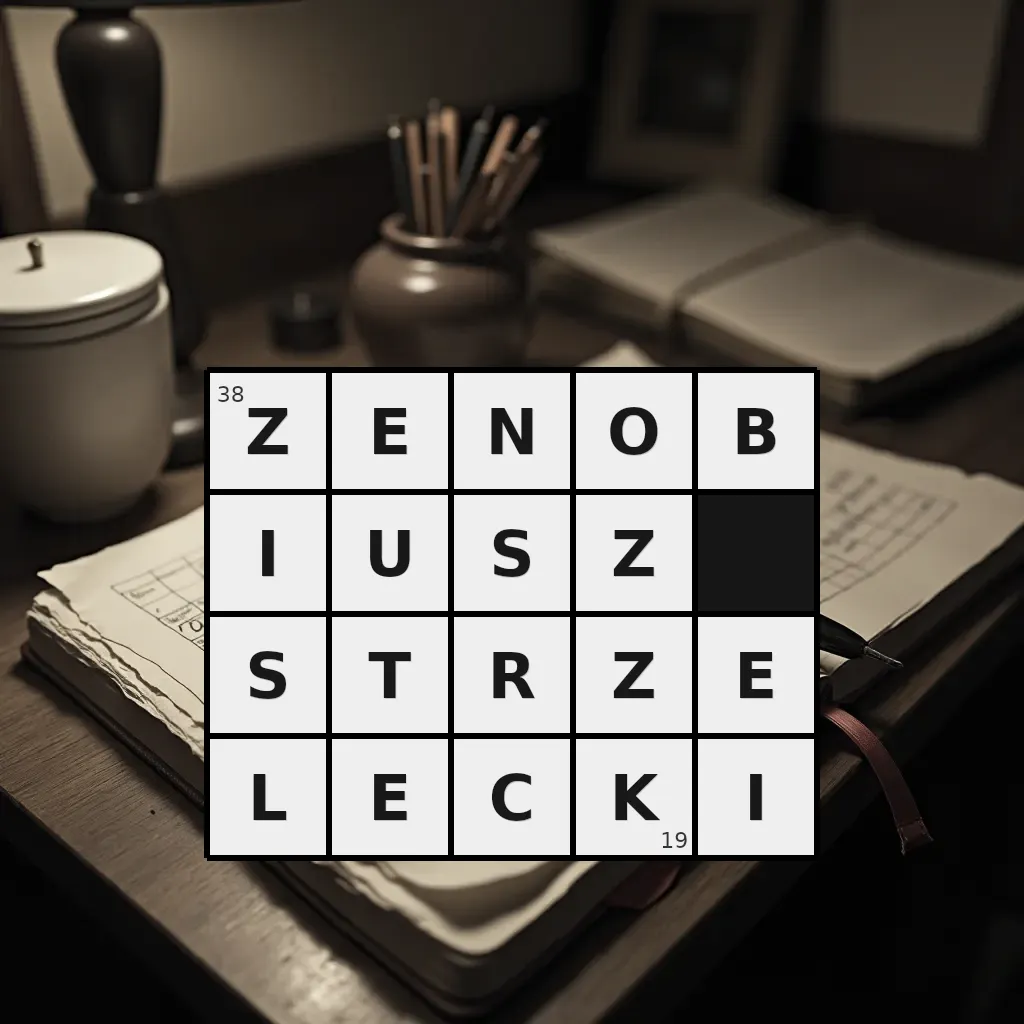 Słowo „zenobiusz strzelecki” ma 19 znaków (bez spacji i łączników).