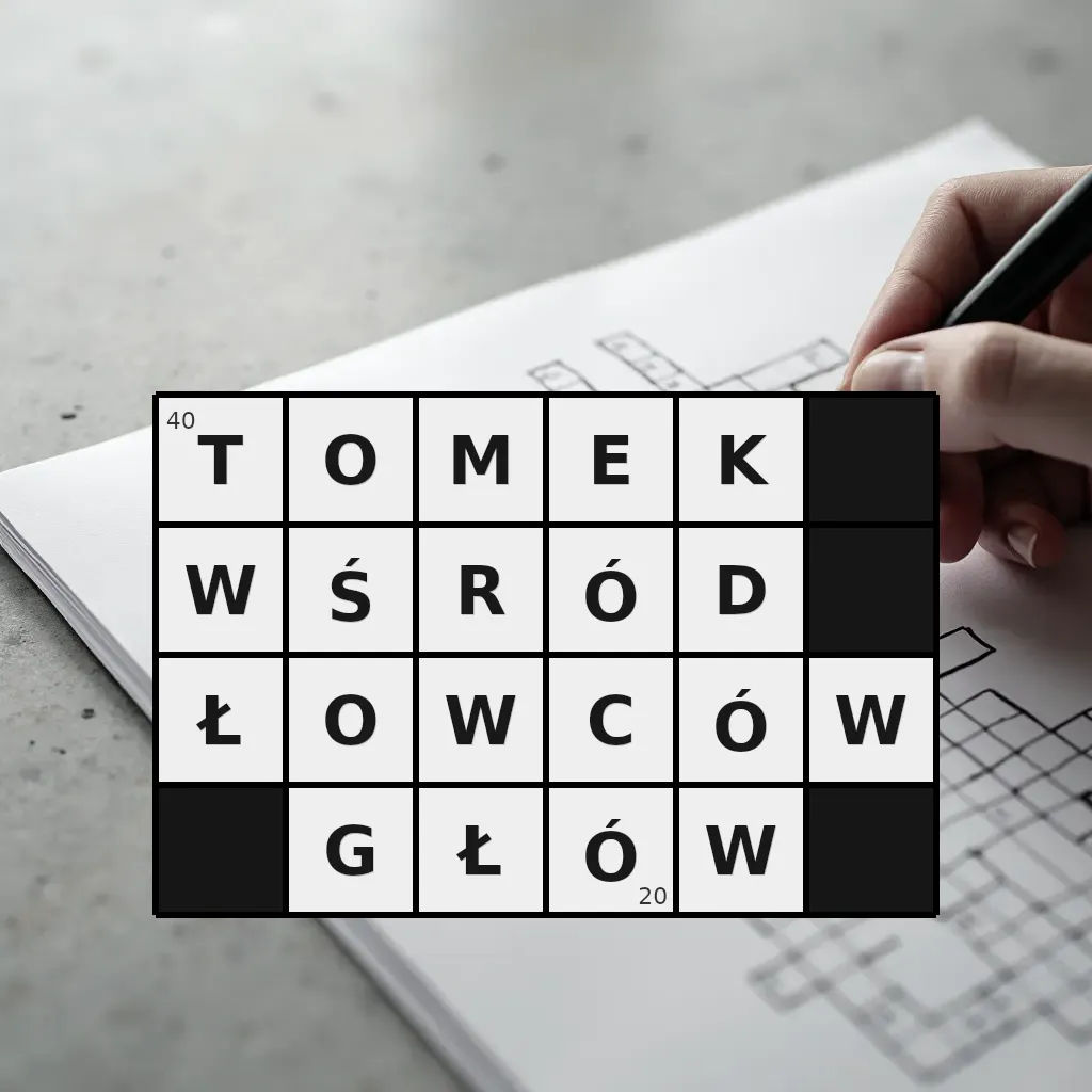 Słowo „tomek wśród łowców głów” ma 20 znaków (bez spacji i łączników).