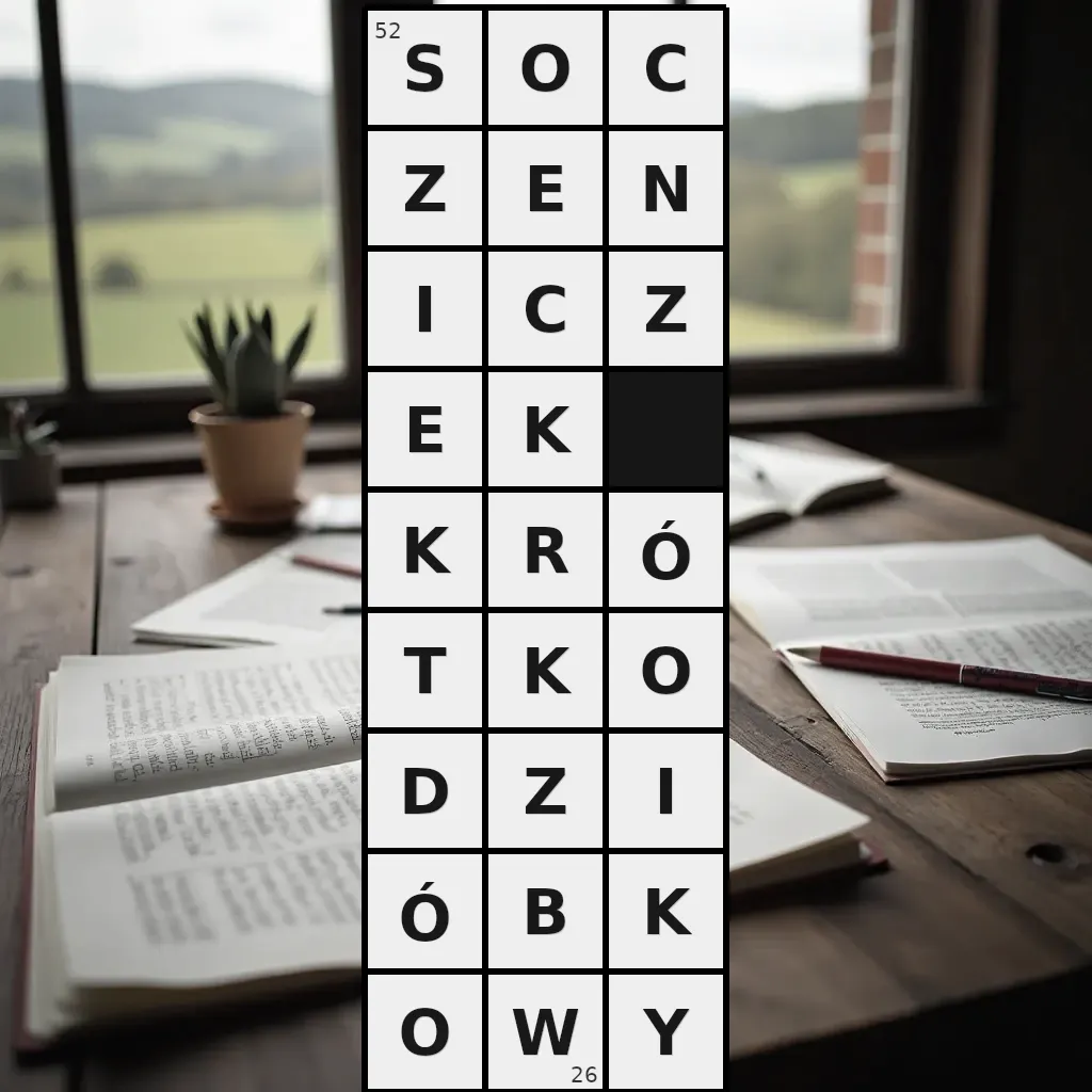 Słowo „soczeniczek krótkodzióbkowy” ma 26 znaków (bez spacji i łączników).