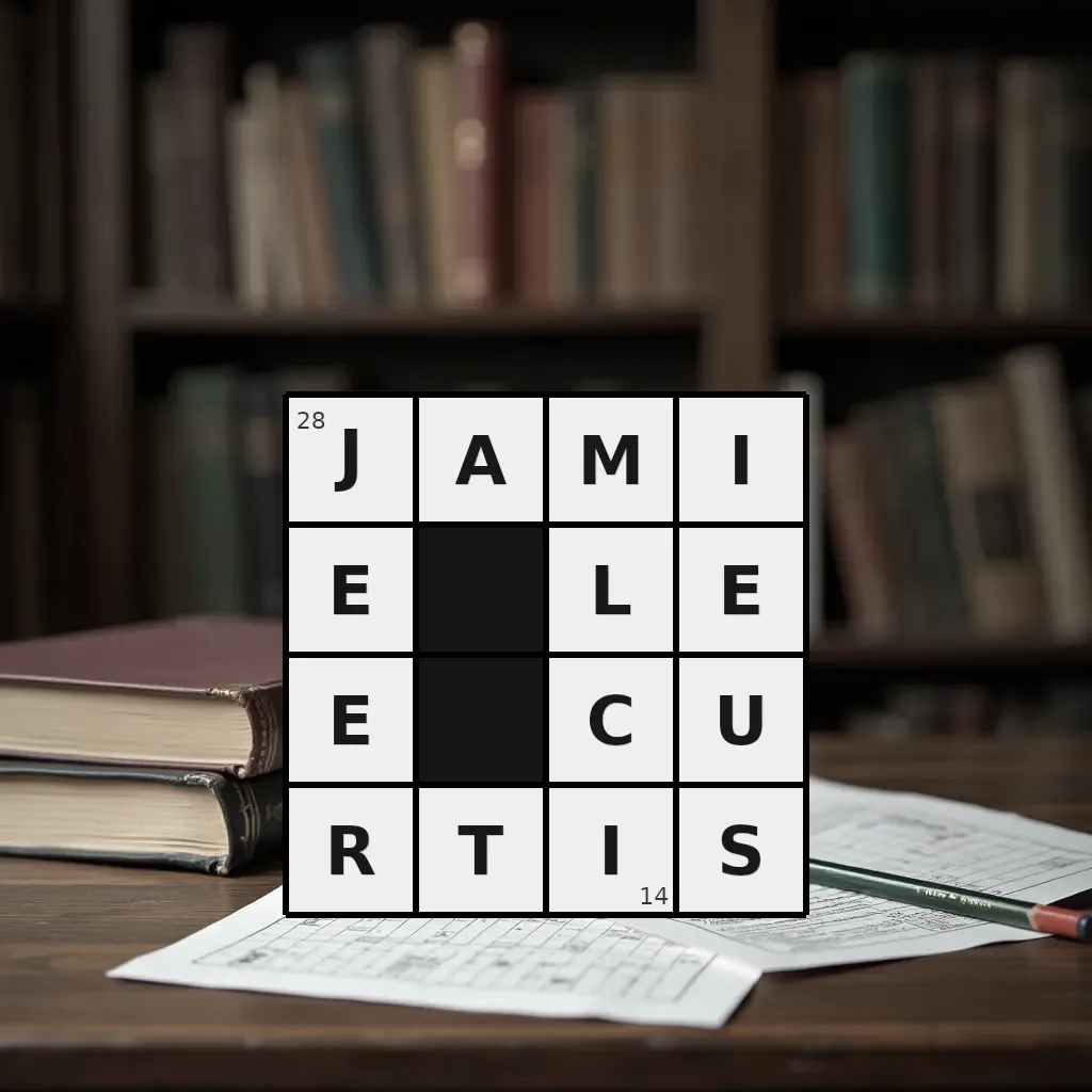Słowo „jamie lee curtis” ma 14 znaków (bez spacji i łączników).