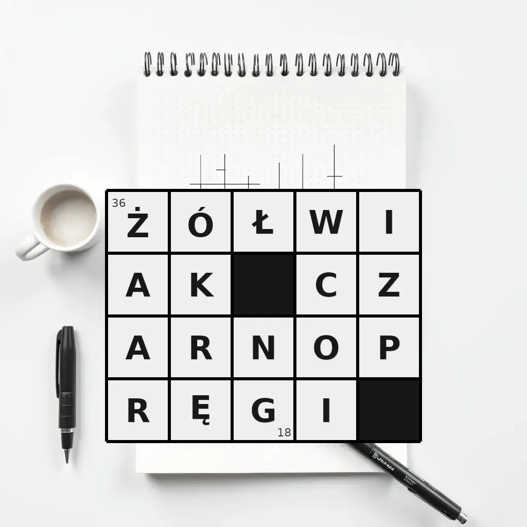 Zawiera litery: A, A, C, G, I, I, K, N, O, P, R, R, W, Z, Ó, Ę, Ł, Ż