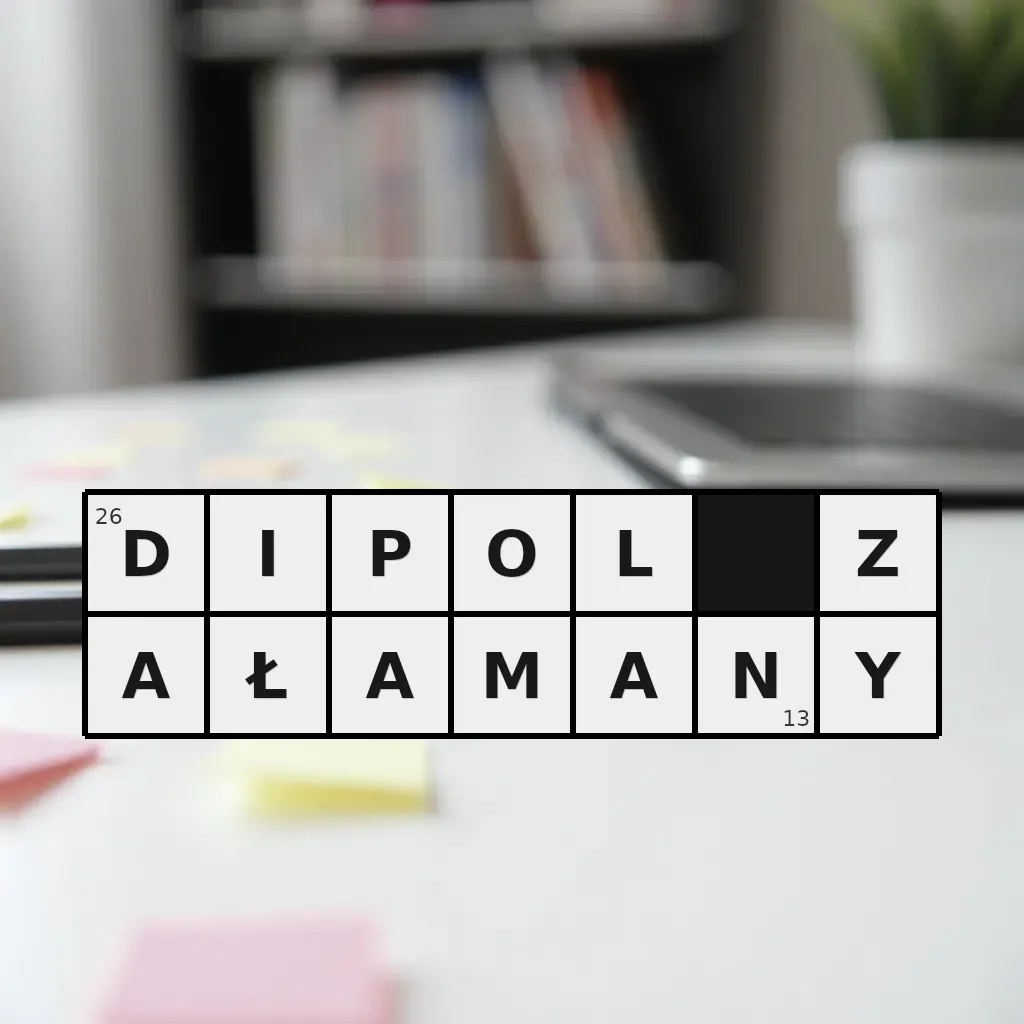 Słowo „dipol załamany” ma 13 znaków (bez spacji i łączników).