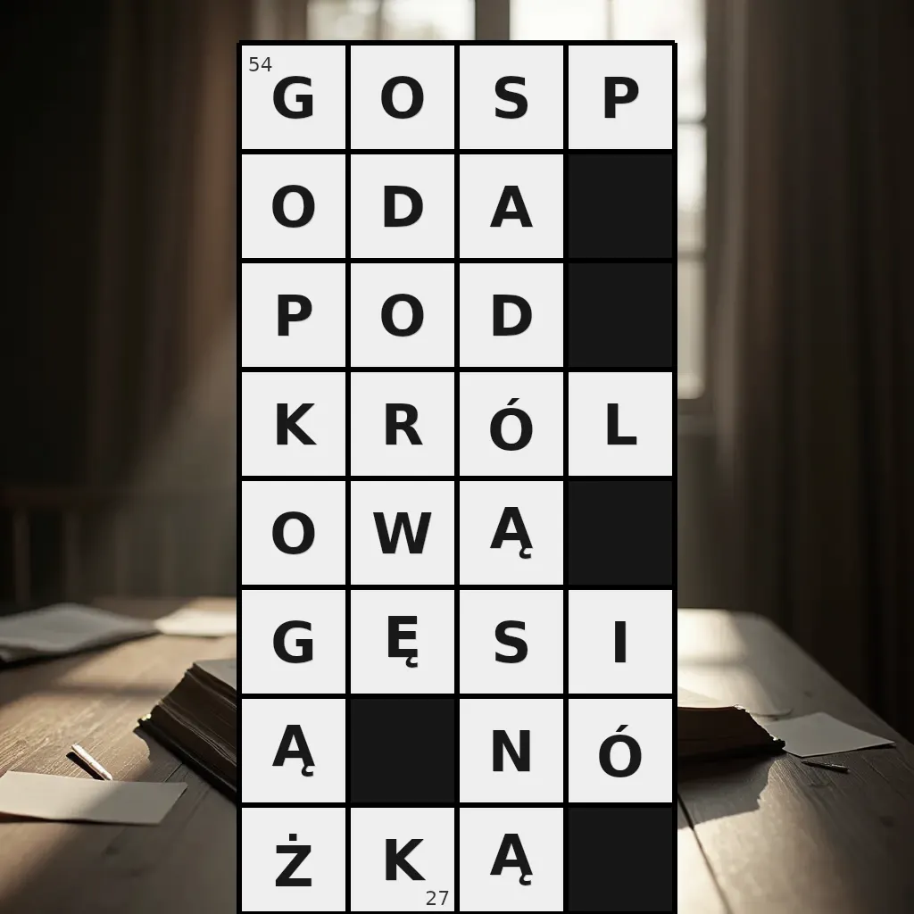 Słowo „gospoda pod królową gęsią nóżką” ma 27 znaków (bez spacji i łączników).