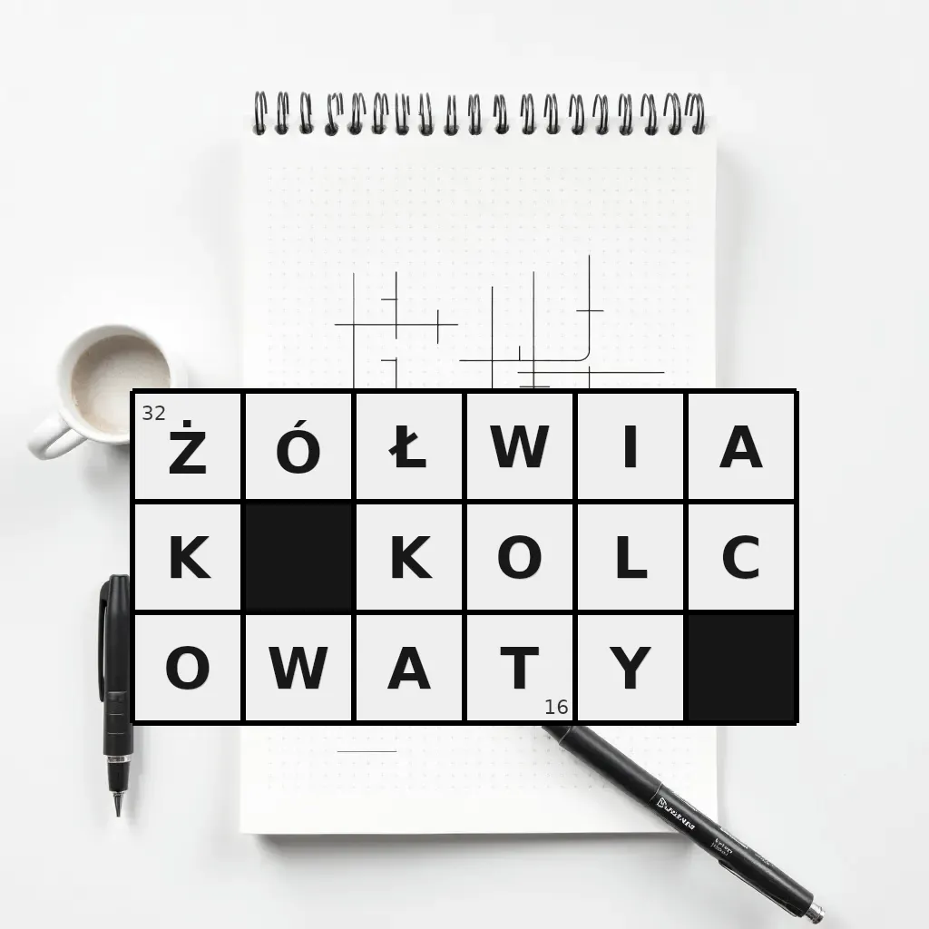 Słowo „żółwiak kolcowaty” ma 16 znaków (bez spacji i łączników).
