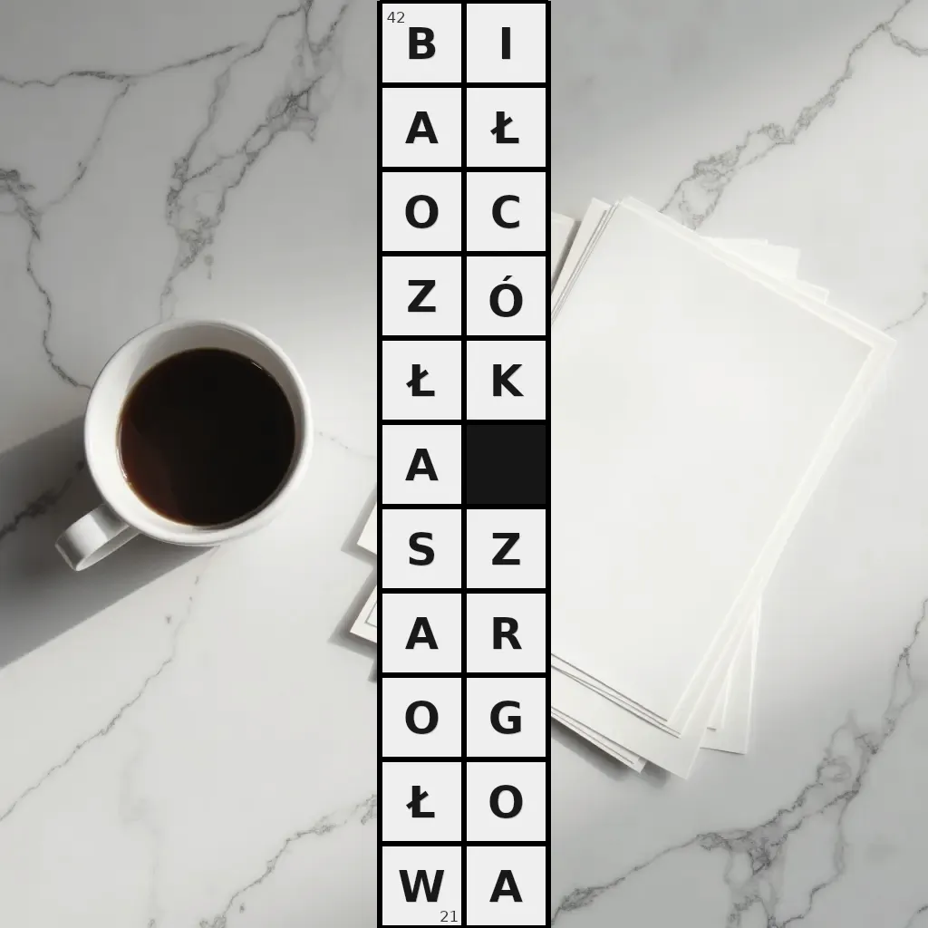 Słowo „białoczółka szarogłowa” ma 21 znak (bez spacji i łączników).