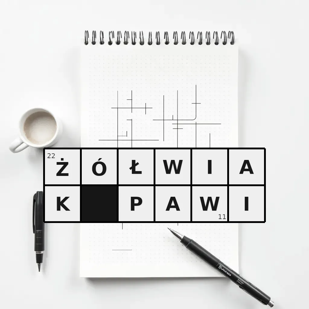 Słowo „żółwiak pawi” ma 11 znaków (bez spacji i łączników).