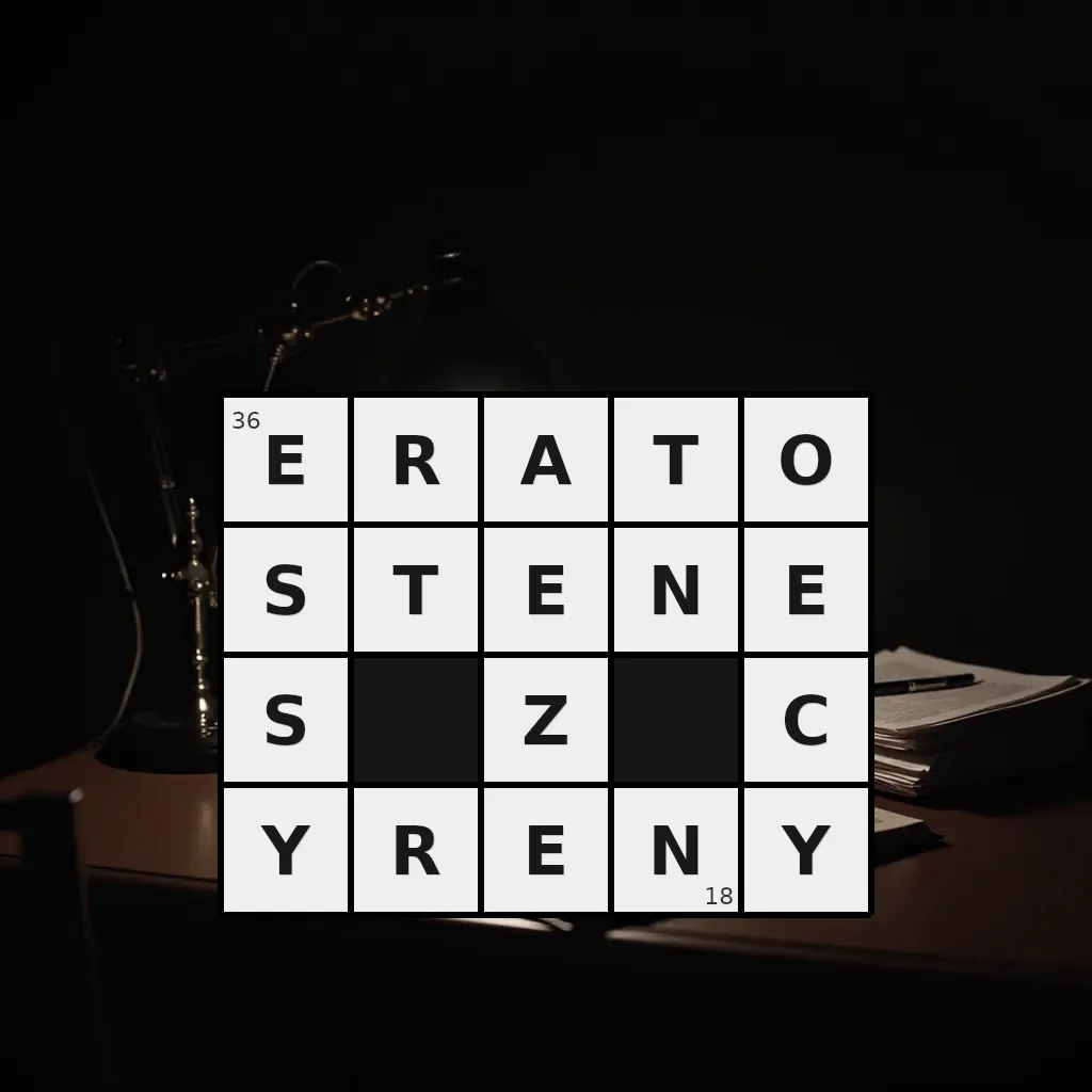 Słowo „eratostenes z cyreny” ma 18 znaków (bez spacji i łączników).