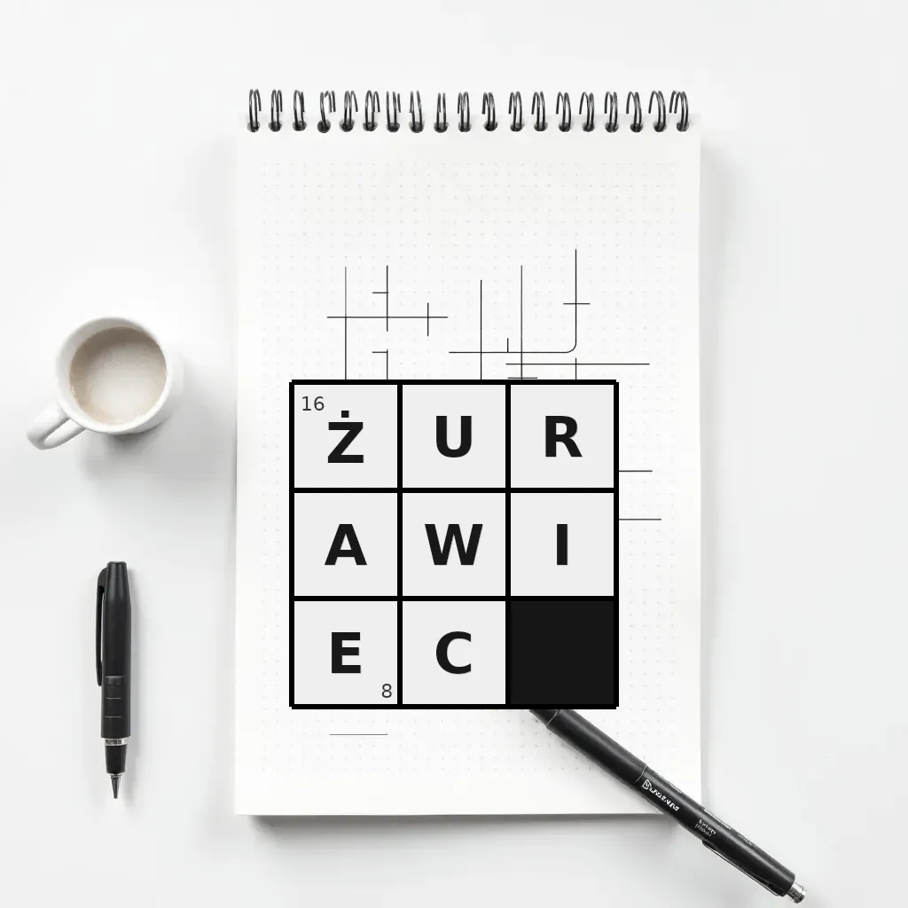 Słowo „żurawiec” ma 8 znaków (bez spacji i łączników).