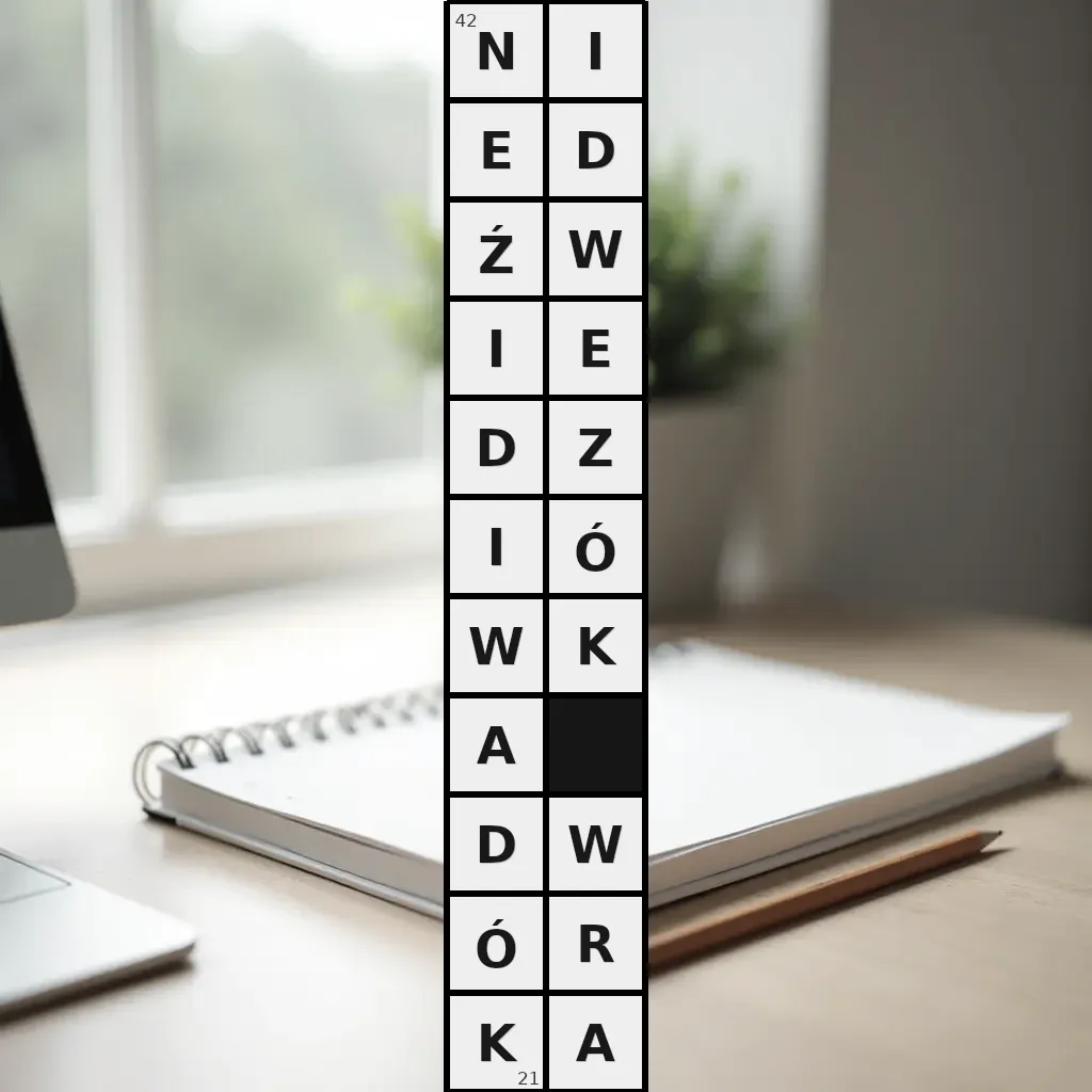 Słowo „niedźwiedziówka dwórka” ma 21 znak (bez spacji i łączników).
