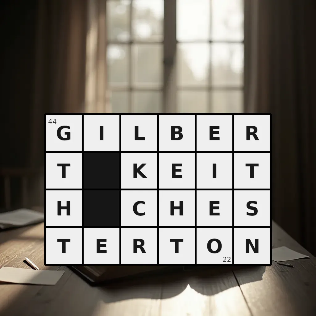 Słowo „gilbert keith chesterton” ma 22 znaki (bez spacji i łączników).