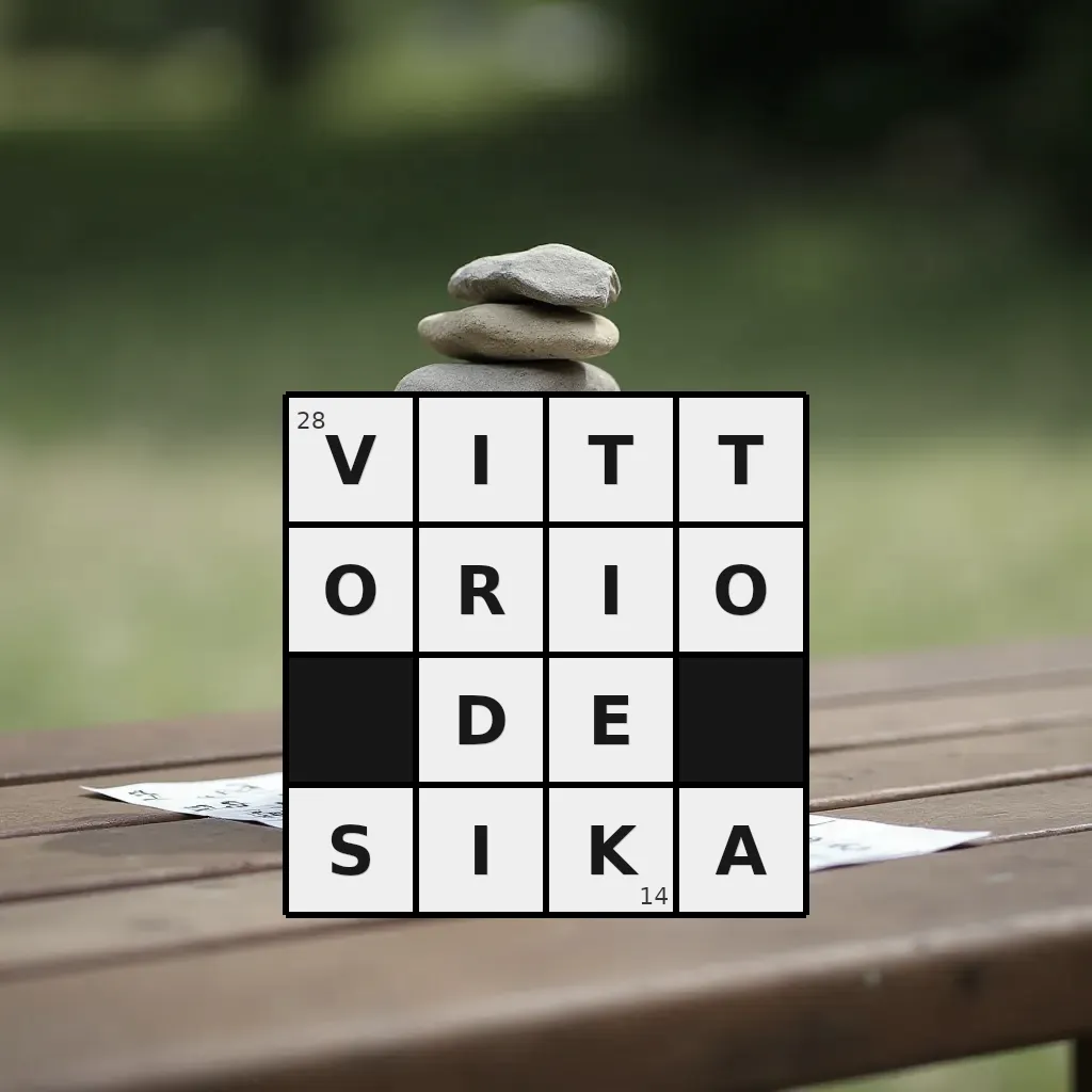 Słowo „vittorio de sika” ma 14 znaków (bez spacji i łączników).