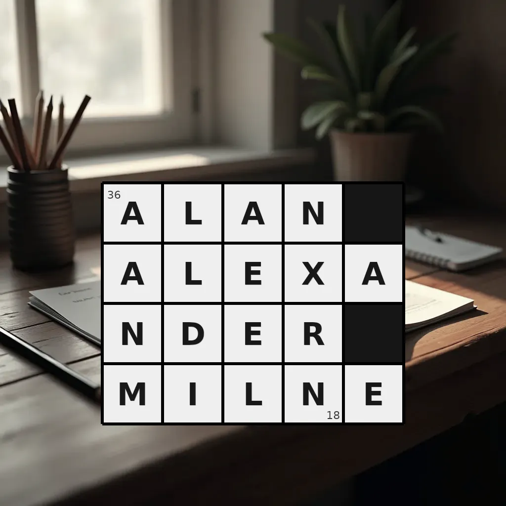 Słowo „alan alexander milne” ma 18 znaków (bez spacji i łączników).