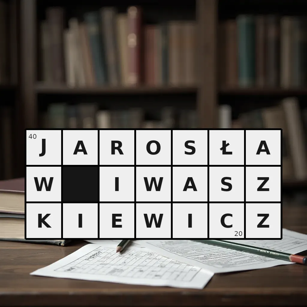 Słowo „jarosław iwaszkiewicz” ma 20 znaków (bez spacji i łączników).