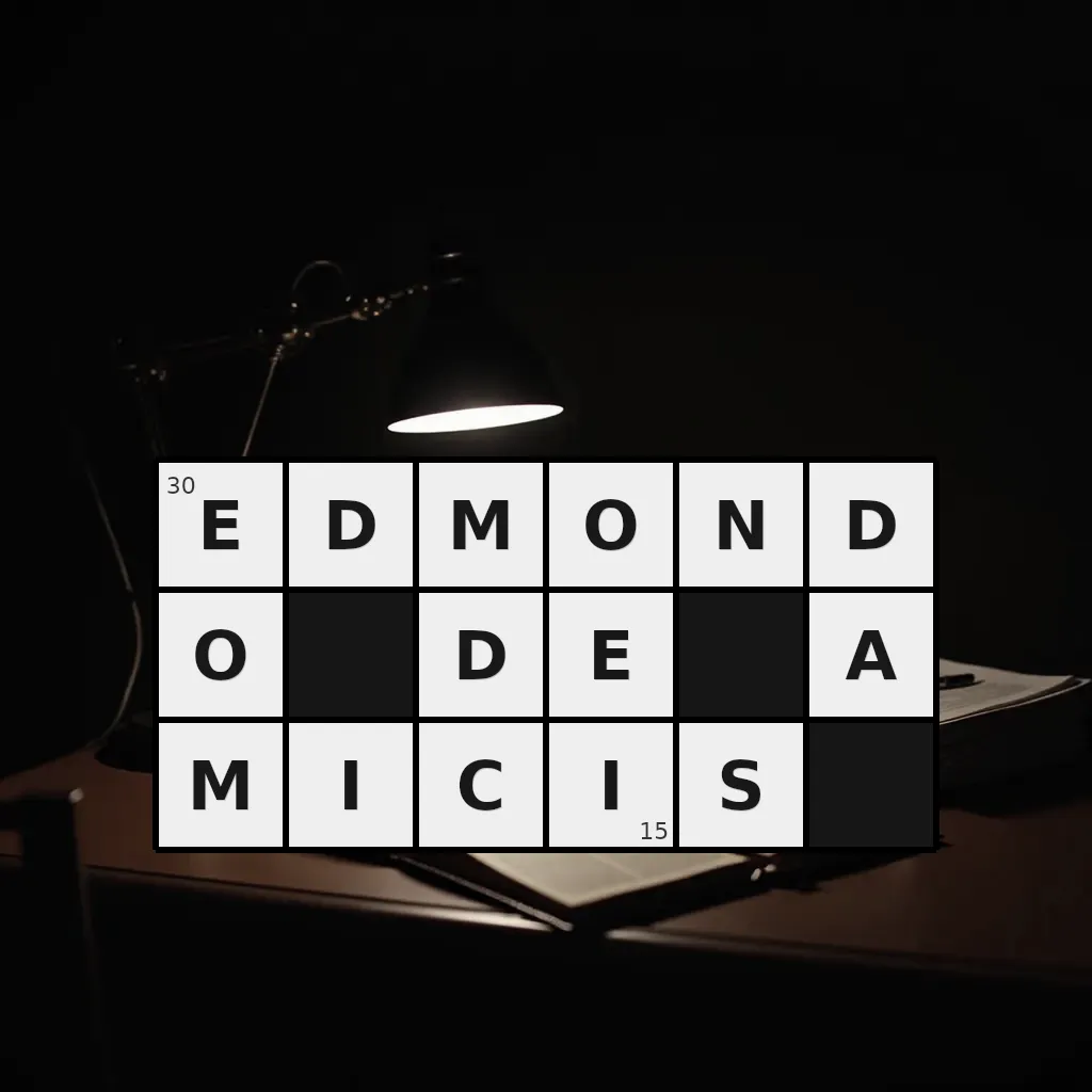 Słowo „edmondo de amicis” ma 15 znaków (bez spacji i łączników).