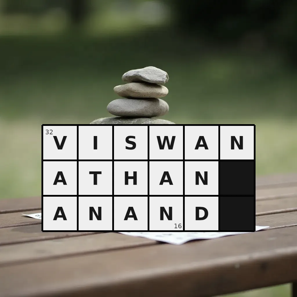Słowo „viswanathan anand” ma 16 znaków (bez spacji i łączników).