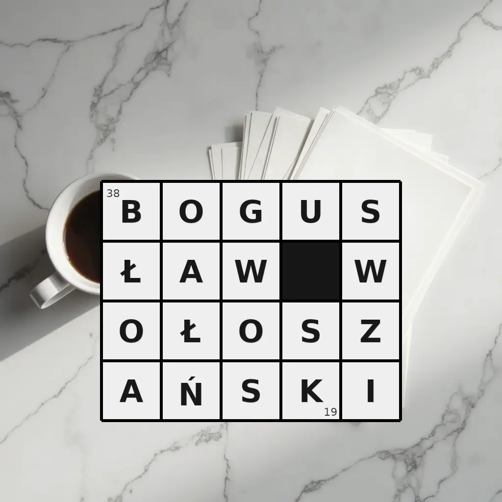 Słowo „bogusław wołoszański” ma 19 znaków (bez spacji i łączników).