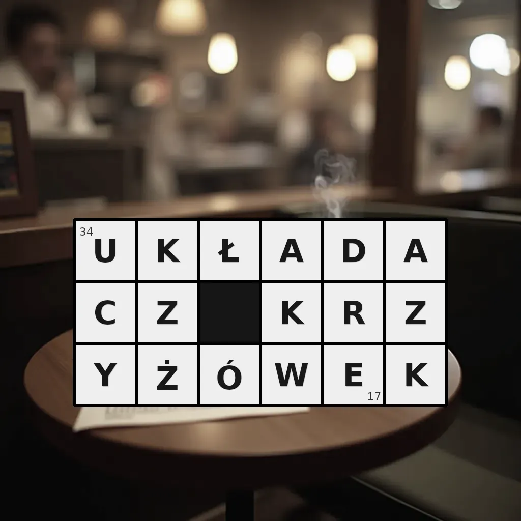 Słowo „układacz krzyżówek” ma 17 znaków (bez spacji i łączników).