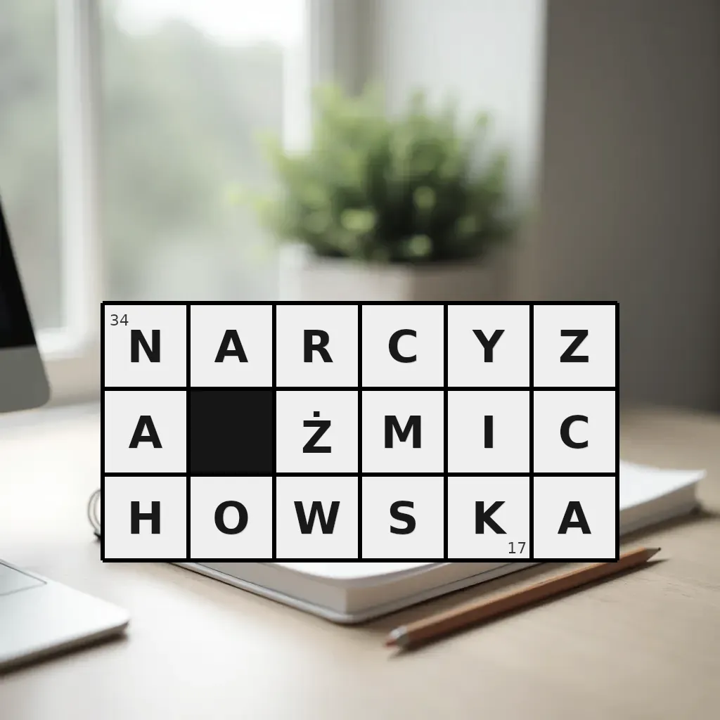 Słowo „narcyza żmichowska” ma 17 znaków (bez spacji i łączników).