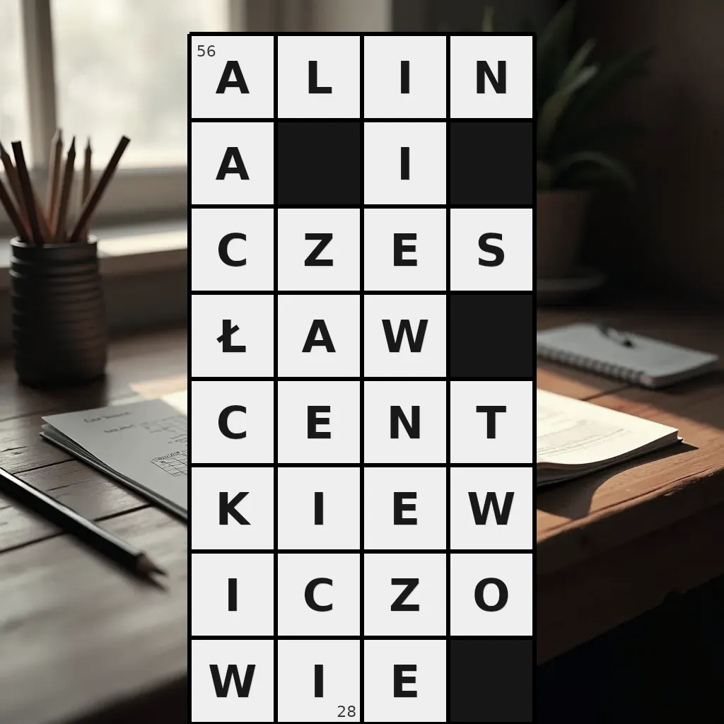 Słowo „alina i czesław centkiewiczowie” ma 28 znaków (bez spacji i łączników).
