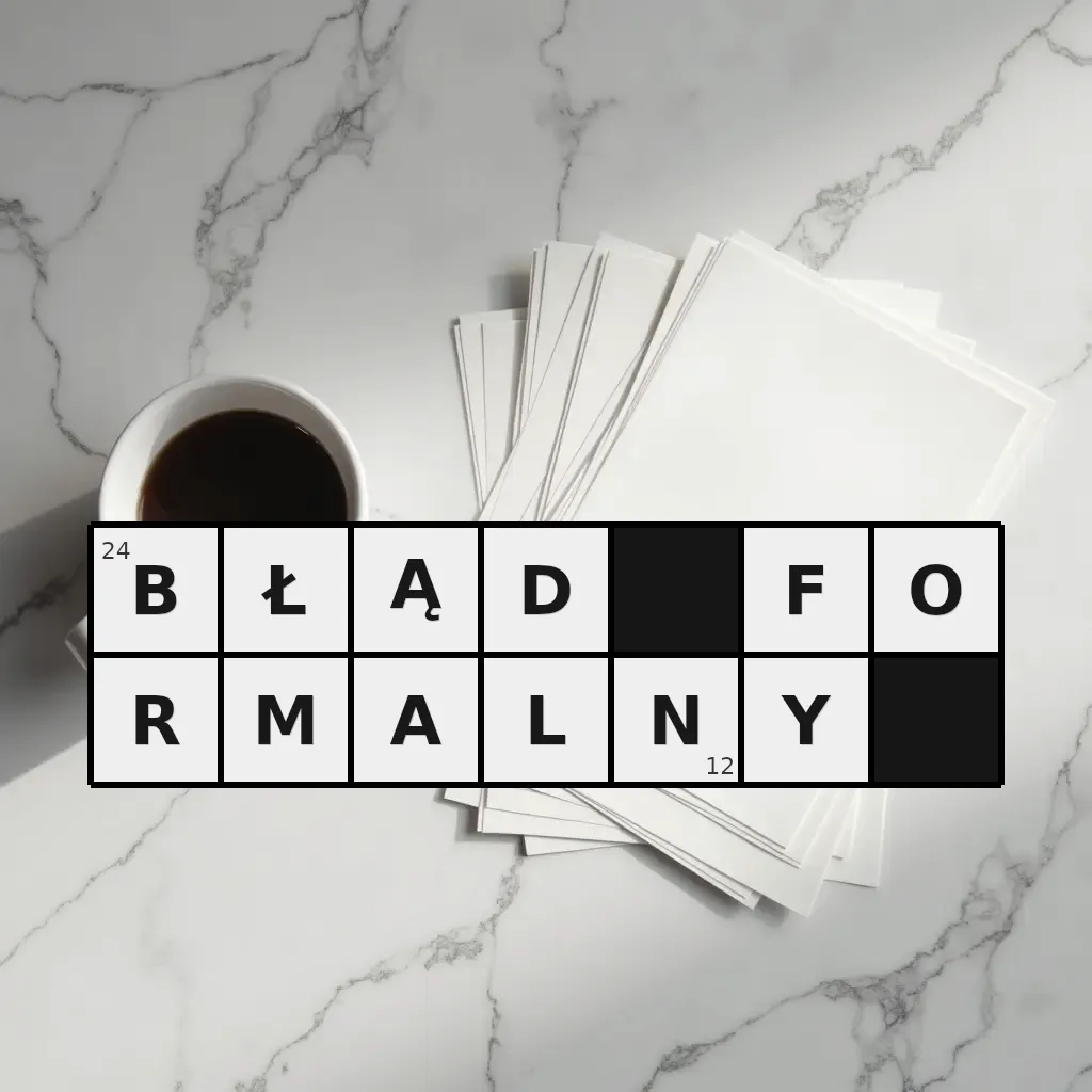 Słowo „błąd formalny” ma 12 znaków (bez spacji i łączników).