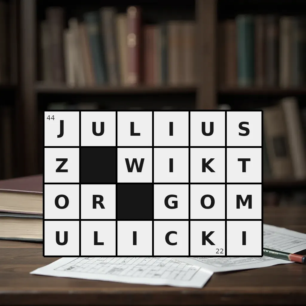Słowo „juliusz wiktor gomulicki” ma 22 znaki (bez spacji i łączników).