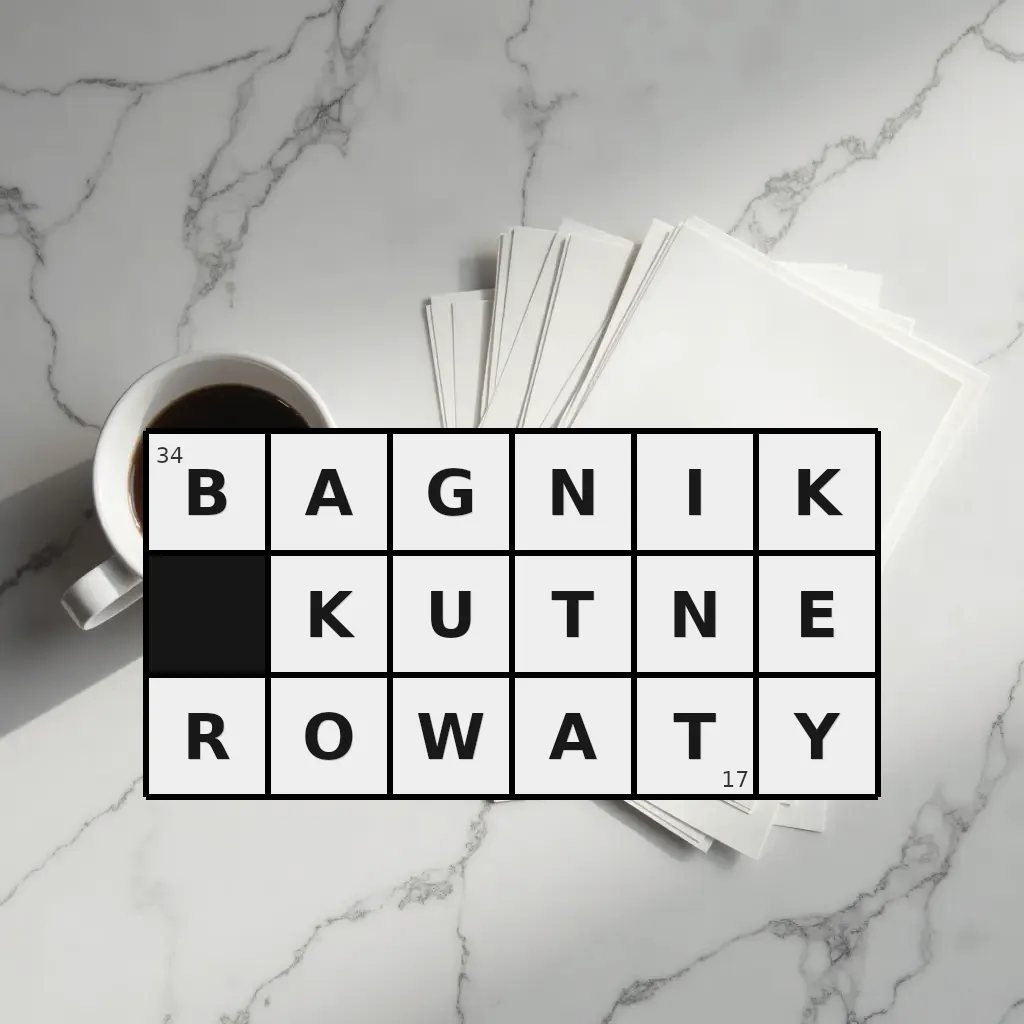 Słowo „bagnik kutnerowaty” ma 17 znaków (bez spacji i łączników).