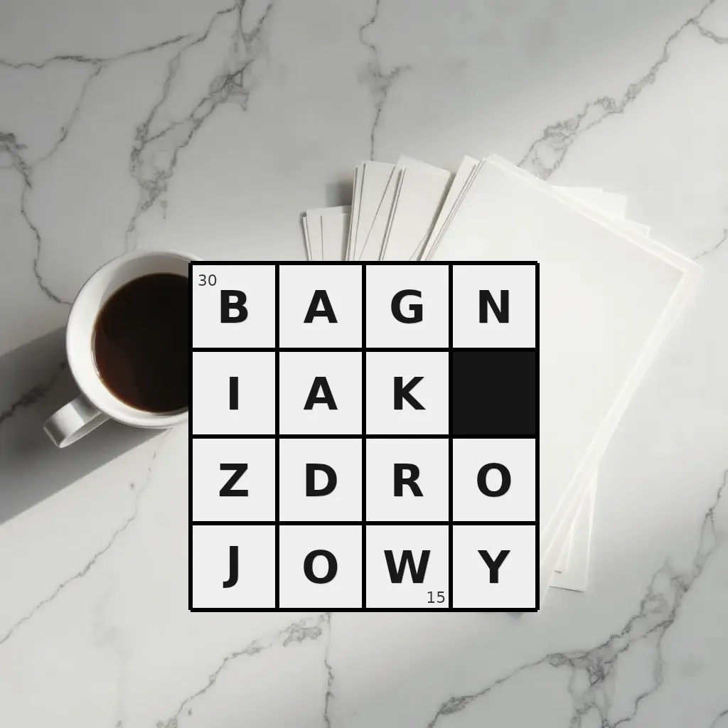 Zawiera litery: A, A, B, D, G, I, J, K, N, O, O, R, W, Y, Z