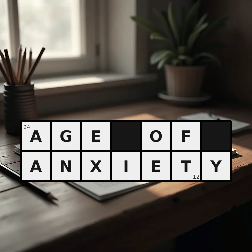 Słowo „age of anxiety” ma 12 znaków (bez spacji i łączników).