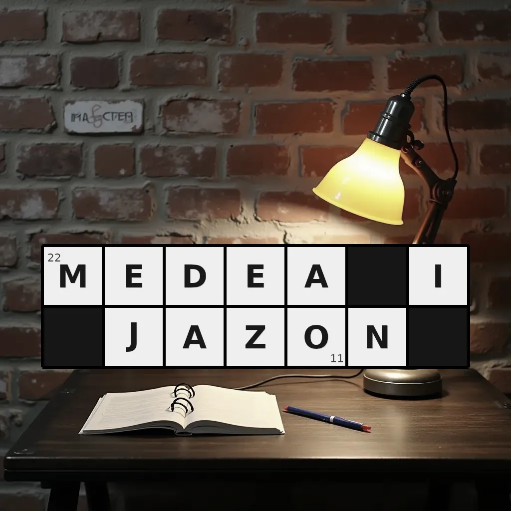 Słowo „medea i jazon” ma 11 znaków (bez spacji i łączników).