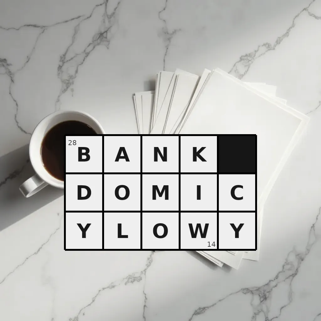 Słowo „bank domicylowy” ma 14 znaków (bez spacji i łączników).