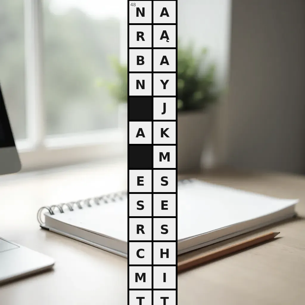 Zawiera litery: A, A, A, B, C, E, E, H, I, J, K, M, M, N, N, R, R, S, S, S, T, T, Y, Ą