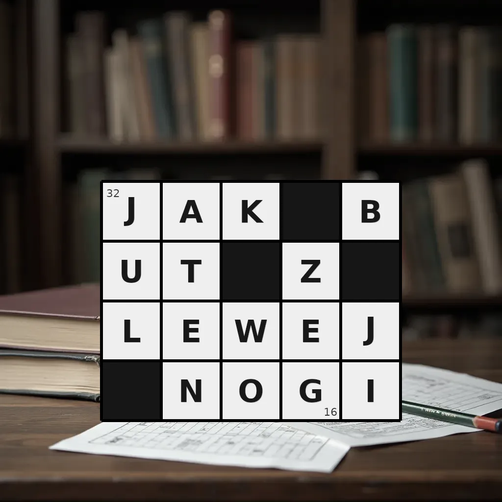 Słowo „jak but z lewej nogi” ma 16 znaków (bez spacji i łączników).