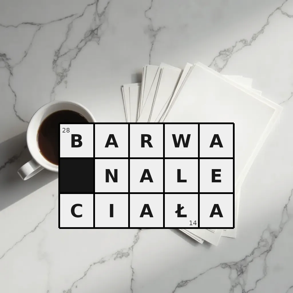 Zawiera litery: A, A, A, A, A, B, C, E, I, L, N, R, W, Ł