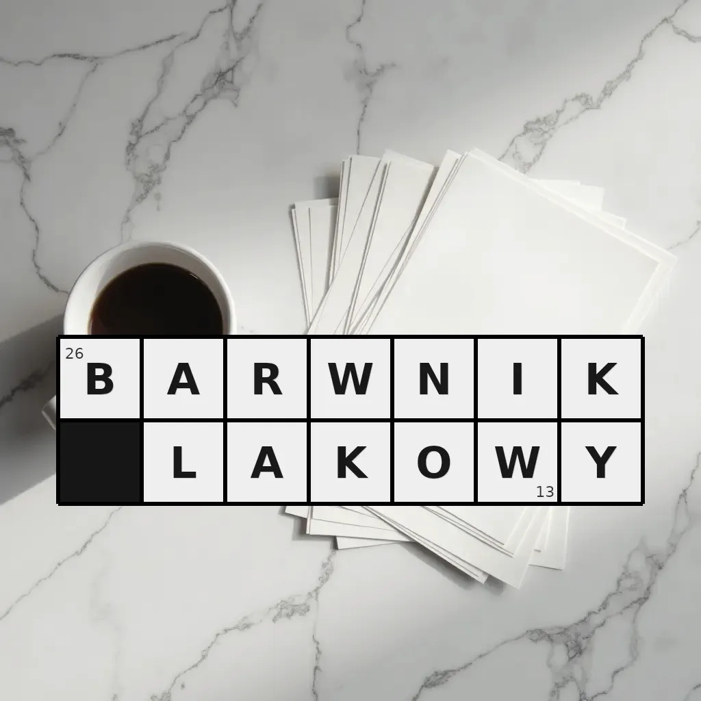 Słowo „barwnik lakowy” ma 13 znaków (bez spacji i łączników).